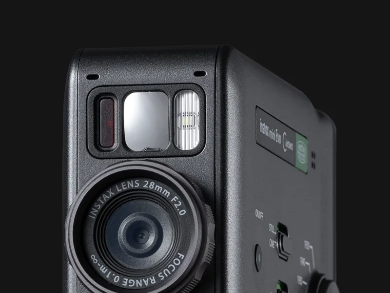 Hybrydowy aparat instax mini Evo Cinema™ oferuje znacznie więcej niż standardową lampę błyskową - posiada także źródło światła ciągłego do nagrywania wideo, zapewniając perfekcyjne oświetlenie zarówno zdjęć, jak i filmów.