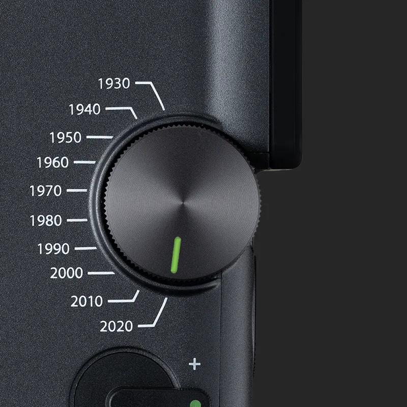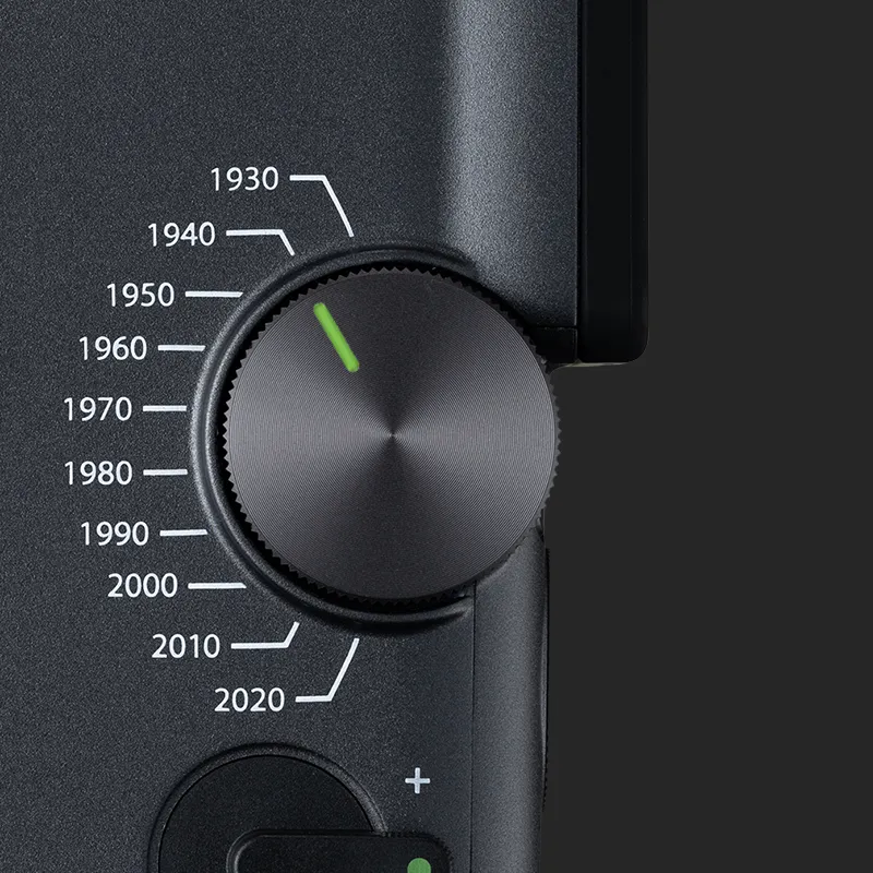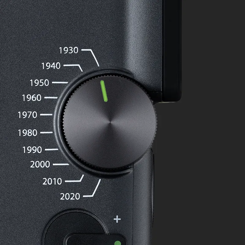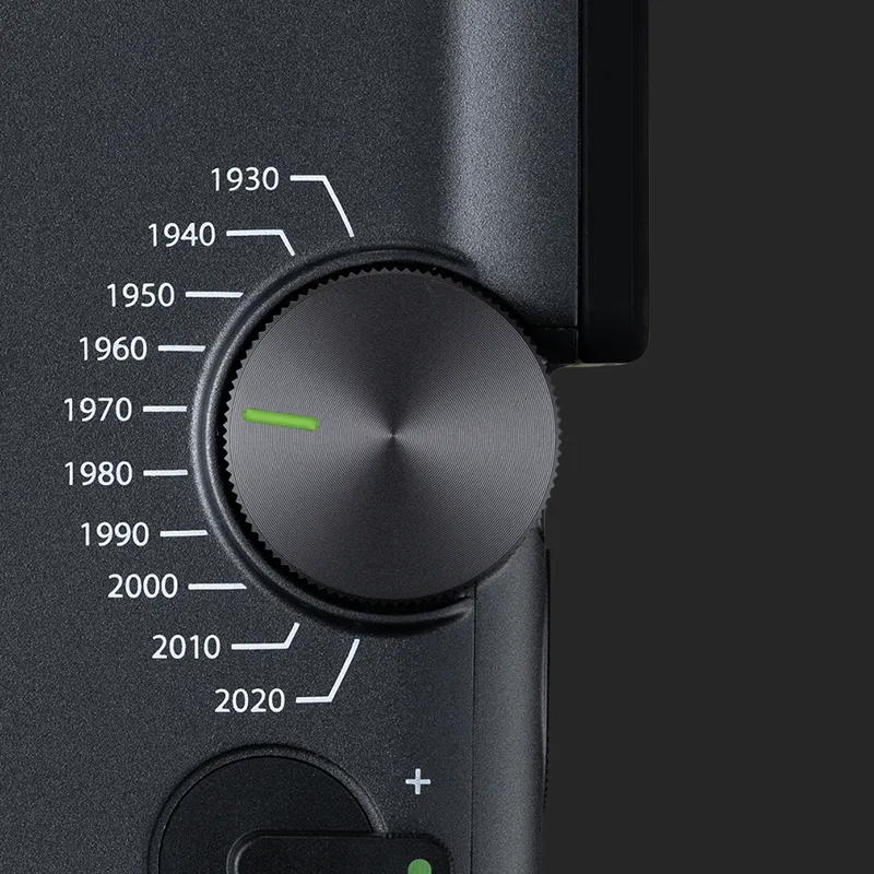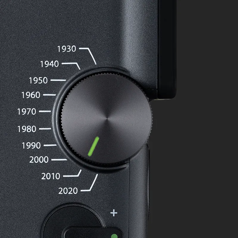 Cofnij się w czasie dzięki pokrętłu Eras – ręcznej machinie czasu, która pozwala przełączać się między 10 dekadami stylu. Od ziarnistego uroku lat 30. po wyrafinowaną nowoczesność lat 20. XXI wieku - każdy z trybów Eras oferuje własny wygląd i efekty dźwiękowe, tworząc ponadczasowy, filmowy klimat.